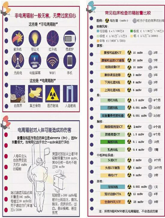 體檢車經過幾十年的發(fā)展越來越先進,DR體檢車上面裝有車載DR設備??梢宰鲂夭縓光線檢查。一臺透視儀在體檢者胸前來回移動照射,醫(yī)生在另一頭的檢查室觀察。體檢車放射檢查的確有利有弊是一把雙刃劍,不應檢查過度,也不必因此諱疾忌醫(yī)。因為通過檢查可以更加容易對患者的病情確診,對癥下藥。放射性體檢,對身體或多或少有點傷害,主要的危害是放射檢查對我們是通過來自X線產生的電離進行輻射。但是在必須檢查的情況下研究表明利大于弊,因為接受一定量的輻射是正常的。體內可以自我修復。一個大人接受一年100毫西弗的輻射對身體沒多大傷害的。但是不能過度放射檢查。當有必要做的。當數不能過于頻繁的情況或逐步改善無顯著變化,也沒有必要每天進行審查,否則成為放療的變相。以下是常見臨床檢查的輻射量比較圖