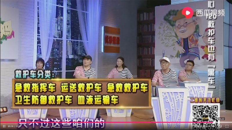 救護(hù)車有沒有分類呢?比如說這個病人是心臟病,這個病人是高血壓暈倒了,那個病人腳受傷了。如果這個是小朋友,又是要派什么救護(hù)車呢?專家現(xiàn)場給了解答,按國家標(biāo)準(zhǔn)來講,救護(hù)車是有分類的。但是并沒有分的那么細(xì)致,它可以分為急救指揮車,發(fā)生一些大型事故,然后群死群傷很多人,就需要有個上級領(lǐng)導(dǎo),到現(xiàn)場進(jìn)行一個指揮工作。第二個是我們常見的運送病人的運送救護(hù)車,這種救護(hù)車它一般是運送一些病情比較平穩(wěn)的,它上面有常規(guī)的搶救措施,第三類是叫急救救護(hù)車,這種救護(hù)車上面裝的設(shè)備就非常齊全,主要用于運送一些非常危重的病人,因為對一些危重病人能夠在途中開展一些特別的搶救,比如說上面有呼吸機(jī),進(jìn)行心肺復(fù)蘇等等。第四個衛(wèi)生防御救護(hù)車,這種救護(hù)車上面會配備一些負(fù)壓吸引裝置,它可以把病人呼出的帶有病毒的氣體,通過過濾然后再消毒以后,再排放到空氣當(dāng)中,然后防止這些病毒傳播,還有比如說一些運血的,血液運輸這方面的對他要搶時間。所以他們也需要救護(hù)車,血液在常溫下我們知道保存時間是不長的。所以它需要專門的保溫設(shè)備,這個就是血液運輸車。其實救護(hù)車的分類還是比較細(xì)的。