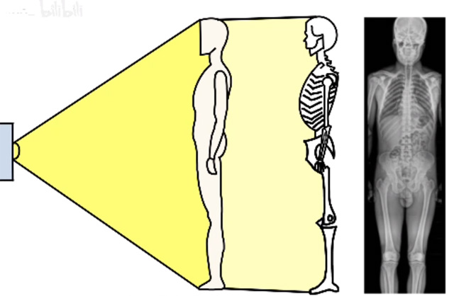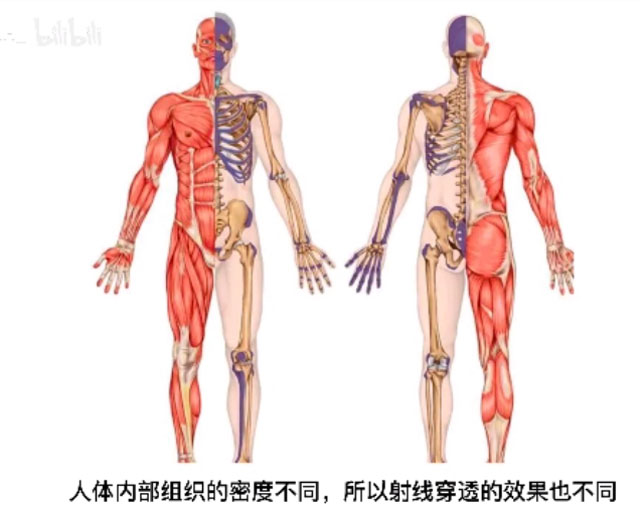 有時候有點咳嗽,需要使用DR拍片檢查。病人需要躺到DR檢查床上面,影像所見:兩肺中下野內(nèi)中帶(墜積部位)可見肺紋影增多、增粗、模糊。病變部位小葉實變并存多發(fā)散在斑片狀高密度影,密度不均。影像診斷:考慮間質(zhì)性肺炎?請結(jié)合臨床。接下來我們來簡單的理解DR的拍攝原理。X射線的特殊屬性是穿透性。DR就是利用了這個特殊屬性。人體內(nèi)部組織的密度不同,所以射線穿透的效果也不同。比如肺被穿透后,因為它沒有阻擋,在X線片上就是黑的,膠片能夠全部曝光,所以呈現(xiàn)出來是黑的。骨骼肋骨不容易穿透,所以它顯示出來就是白的。
