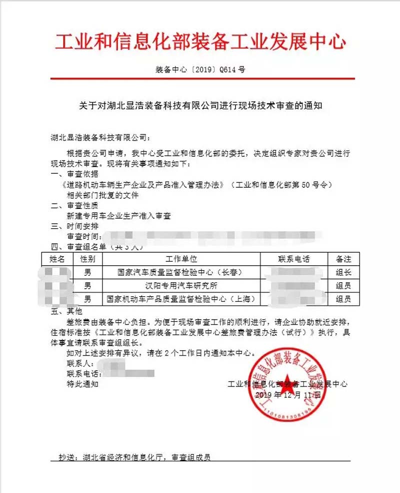 2019年12月19日湖北省顯浩裝備科技有限公司迎來了工信部委派的三位技術(shù)審查專家,三位專家對我司申請的醫(yī)療車,獻(xiàn)血車,負(fù)壓救護(hù)車,等專用車企業(yè)準(zhǔn)入進(jìn)行現(xiàn)場技術(shù)審查。
