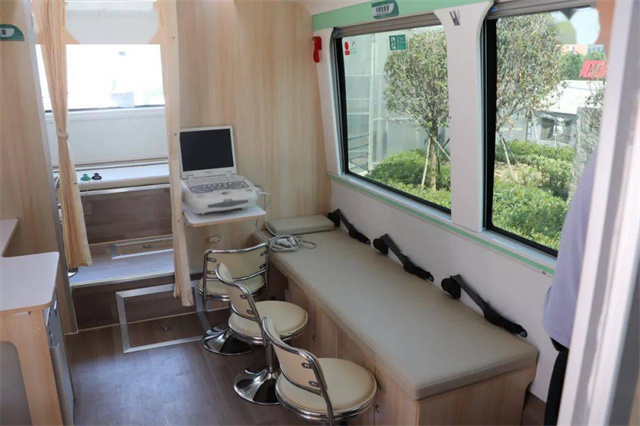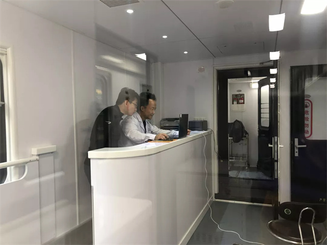 體檢車上都有這些檢查室?車廂里有男女彩超室,男女心電圖室,內科、外科以及,骨密度、碳十三檢測室等,可以對血常規(guī)、肝膽功能,腎功能、空腹血糖、尿常規(guī),心電圖、肝膽胰脾B超等項目進行檢查。車上都有這些功能室?候診登記處可以在候診區(qū)等待就診,各類醫(yī)療用品和采樣冷藏柜也很完善。體檢車廂配置了全自動生化分析儀、全自動尿液分析儀、B超檢查室、心電圖檢查室等,可以進行前臺導診、采血、尿液檢查、實驗室化驗、DR拍攝、超聲心電檢查等項目,能夠為職工進行全面體檢,最快當天即可出結果。