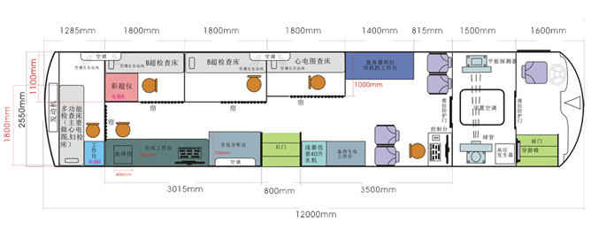 車載DR體檢車功能卻很齊全,車上配裝X光機(jī)、心電超聲檢查、電測聽室、全自動(dòng)生化分析儀以及檢查床、冰柜、空調(diào)和紫外線消毒燈等先進(jìn)醫(yī)療儀器設(shè)備。