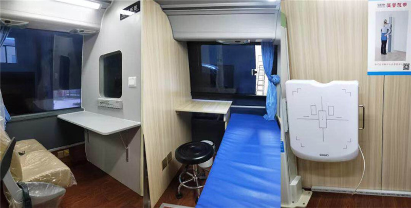 內(nèi)設(shè)采血區(qū)和測(cè)聽(tīng)室及獨(dú)立的B超室,私密的空間、設(shè)備齊全、可實(shí)現(xiàn)現(xiàn)場(chǎng)問(wèn)診,身體數(shù)據(jù)采集監(jiān)測(cè)數(shù)據(jù)采集存儲(chǔ),生化采樣等日常檢測(cè)功能,完成正常健康體檢和職業(yè)病檢查。