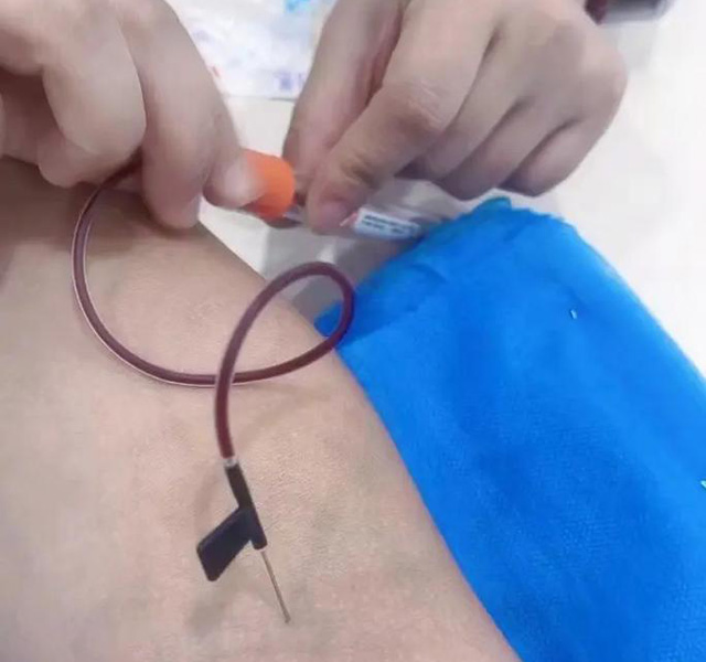 血管帶一定要扎緊,血管才會(huì)充盈。然后握拳可以看到血管。血管扁的不明顯的話就輕輕的拍一下。不需要用力的打這樣可以清晰的看到血管。血管比較細(xì)的話。扎血管的地方消毒兩次,采血針打開后。看到的兩頭都是針,針的一頭插進(jìn)血管,另外一頭插到管引血液。血液抽的差不多時(shí)候就用大拇指頂著管頭。血就流不出來了。然后解開止血帶,取一根干棉簽。然后把管的針拔出來就可以了。進(jìn)針角度大時(shí)候不疼但容易漏針,進(jìn)針角度小時(shí)候有點(diǎn)疼不容易漏針。進(jìn)針的角度為15度-30度不容易漏針也不疼。