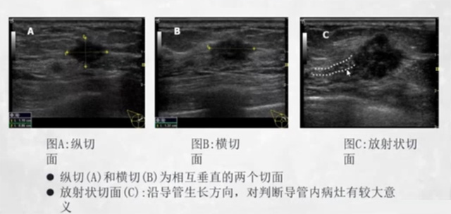 乳腺DR檢查乳腺的縱切和橫切為相互垂直的兩個(gè)切面,放射狀切面,也就是以乳頭為中心來(lái)進(jìn)行一個(gè)掃查,為什么要強(qiáng)調(diào)放射狀切面呢?可以看到病灶是沿著導(dǎo)管方向的。沿導(dǎo)管生長(zhǎng)方向,對(duì)判斷導(dǎo)管內(nèi)病灶有較大的臨床意義。檢查留圖要有橫縱切面,放射狀切面。乳腺病灶的定位有兩種方法,一種是以乳頭為中心,經(jīng)過(guò)乳頭水平線與垂直線,將乳房分為4個(gè)象限,外上下象限,內(nèi)上下象限。另外一種是時(shí)鐘定位法,以乳頭為中心,采用12小時(shí)鐘點(diǎn)制,病變距乳頭的距離。
