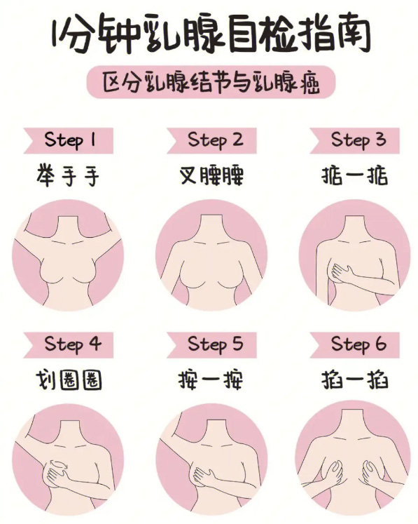 6:將右臂放在頭底下,用左手檢查右側(cè)的乳房是否有腫塊,觸摸時(shí)稍微用力。同樣檢查左側(cè)的乳房。如果你的乳房過(guò)大,可在你的左肩下墊上一個(gè)枕頭。