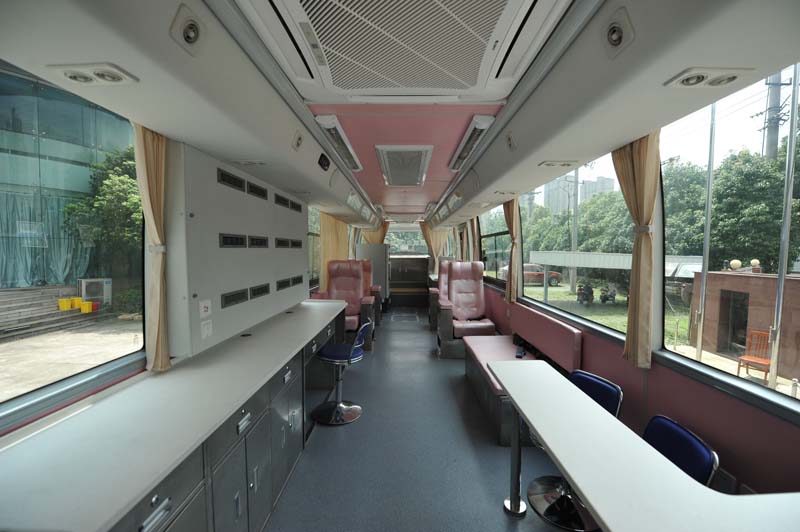 專業(yè)的流動獻(xiàn)血車廠家會將現(xiàn)代健康體檢理念融匯于整車研發(fā)過程,看似小小的獻(xiàn)血車實際所用到醫(yī)療設(shè)備一應(yīng)俱全,大部分流動的獻(xiàn)血車和采血車都有空調(diào)、發(fā)電機(jī)、熱合機(jī)臺、恒溫保鮮冰柜、休息床、工作臺、工作椅、工作桌、立式飲水機(jī)、烘手機(jī)、采血冰箱 30米電纜軸、配電柜、采血椅、采血臺、紫外線消毒燈、 污物桶、滅火器、排風(fēng)系統(tǒng)等。這種移動的獻(xiàn)血車和體檢車類似,是一個移動體檢中心可用于現(xiàn)場體檢和采血。