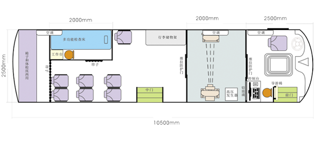 車載DR體檢車功能卻很齊全,車上配裝X光機(jī)、心電超聲檢查、電測聽室、全自動(dòng)生化分析儀以及檢查床、冰柜、空調(diào)和紫外線消毒燈等先進(jìn)醫(yī)療儀器設(shè)備。